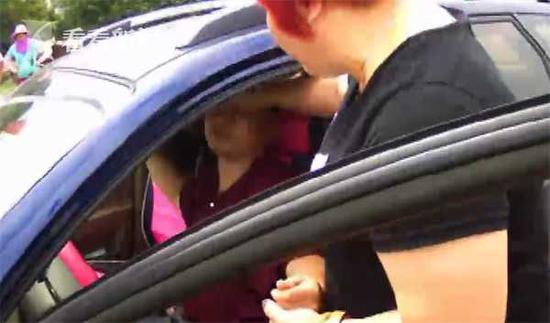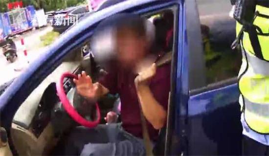 無論民警怎么勸說,駕駛員死死拽著安全帶,就是不肯下車,民警了解到,該駕駛員姓楊,廣西河池人,車輛已經停在斑馬線上半個小時了,而楊某一直在說斑馬線上有老人和小孩,始終不肯開過斑馬線。