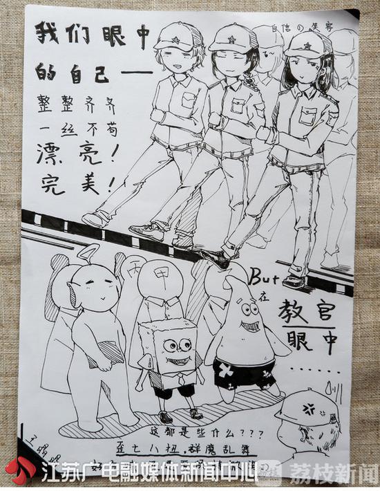 “我們眼中的自己,漂亮、完美、擁有自信的笑容!然而,教官眼中的我們,群魔亂舞,可能還是個(gè)海綿寶寶?”最近,高校的軍訓(xùn)紛紛接近尾聲,南京林業(yè)大學(xué)家居與工業(yè)設(shè)計(jì)學(xué)院的大一新生們,用畫筆記錄軍訓(xùn)中的點(diǎn)點(diǎn)滴滴,或逗趣、或感動(dòng),發(fā)上網(wǎng)后瞬間引發(fā)熱議。