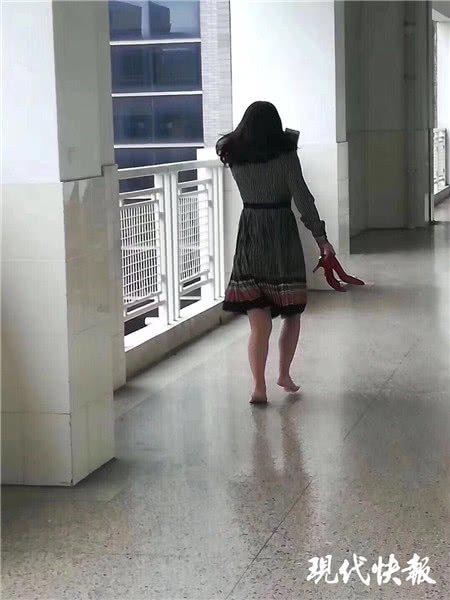 10 月 17 日,現代快報記者聯系到照片拍攝者張春,她是省溧中的在職教師。“ 她孩子不是我們班上的,當時正好早讀課,我在班里巡視,突然看到了這一幕,很受觸動就出來拍了幾張照片。” 據張春介紹,事情發生在 10 月 16 日上午 7 點多,當時她正在教室內看著學生讀書,突然有一名女子出現在教室外,“ 我就看到她蹲下來把高跟鞋脫了提在手上,赤著腳走。”