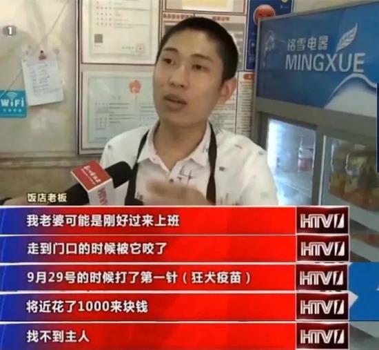 附近的一位飯店老板表示:自己的老婆有天在門口被咬了,因?yàn)檎也坏街魅耍ǖ?000塊錢狂犬疫苗費(fèi)只能自己承擔(dān)。