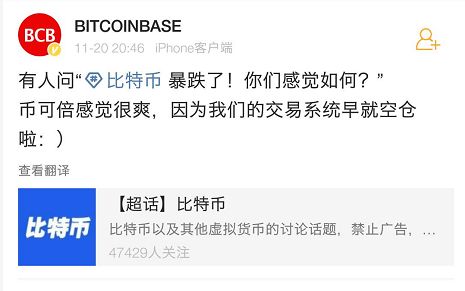 而在微博、微信朋友圈、比特幣論壇等平臺(tái),最近幾天虧損不少的炒家們也是一片“哀鴻遍野”。甚至某幣圈資深玩家表示自己的資產(chǎn)已虧損85%以上,宣布“破產(chǎn)”。