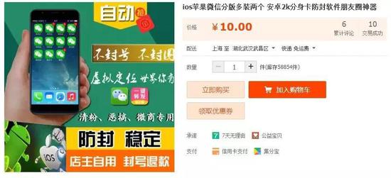 在一家網(wǎng)購(gòu)平臺(tái)上,可以找到一款名為“微信多開(kāi)”的軟件。