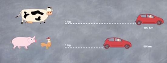 研究證明,生產一公斤牛肉所產生的二氧化碳和一輛經濟型轎車行駛100公里的排放量大致相當。生產一公斤豬肉或禽肉所產生的二氧化碳,相當于轎車行駛大約50公里的排放。