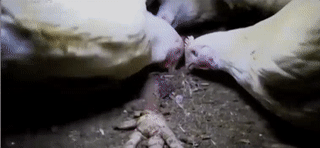有些雞無法在這種不正常的生長速度下存活,它們的身體無法支撐它們走到飼料槽和水槽前;還有一些死于心血管疾病,它們的尸體便成了同類的飼料。所有這些都是我們在吃肉的時候并不了解的事實。