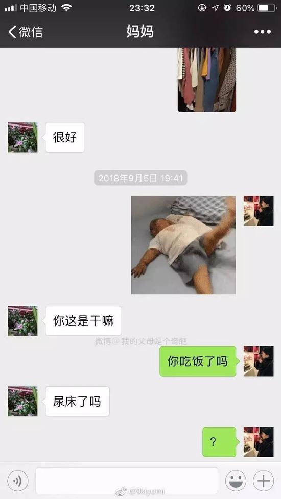 有次我給媽媽發了個小胖孩尿床的表情