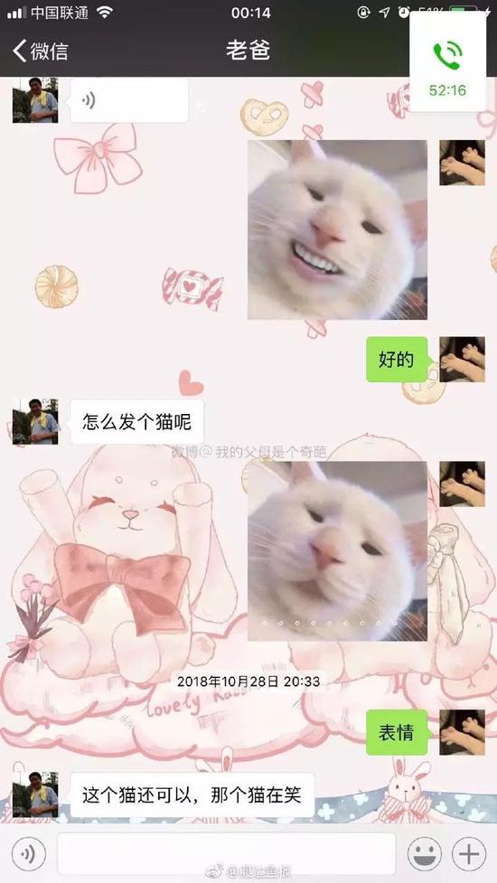 只是隨手發個貓的表情給老爸