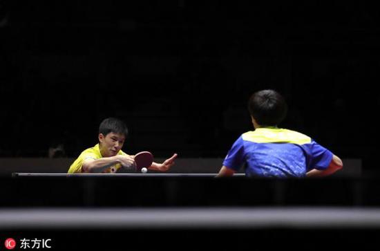 張本智和(右)奪冠創(chuàng)歷史。 本文圖片 東方IC原標(biāo)題:劉國(guó)梁的頭號(hào)難題來(lái)了!重創(chuàng)國(guó)乒,15歲張本智和奪冠創(chuàng)歷史