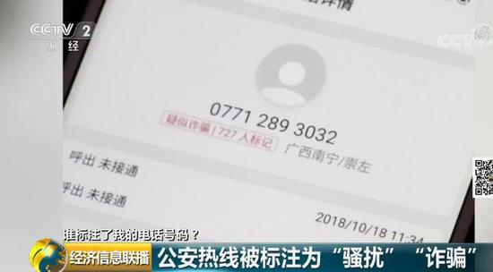 公安熱線被標記為“騷擾”“詐騙”