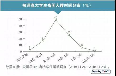 數據顯示,被調查大學生平均睡眠時間為7小時,近半數學生入睡時間在23點到0點間。