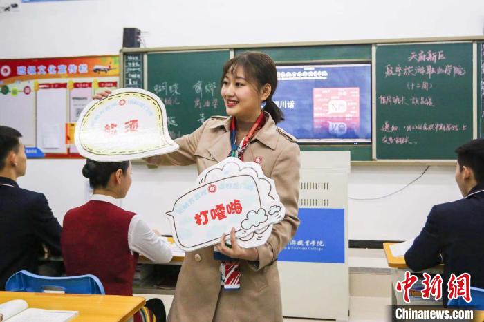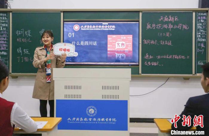 中新網(wǎng)成都11月27日電 (記者 賀劭清)沖殼子(普通話“吹牛”)、腦殼(普通話“頭”)、擺龍門陣(普通話“聊天”)……四川方言出現(xiàn)在課堂是一種什么景象?記者27日從四川天府新區(qū)航空旅游職業(yè)學(xué)院獲悉,該校近日開設(shè)了一門四川方言選修課,同學(xué)在課堂所學(xué)內(nèi)容將出現(xiàn)在期末試卷中,通過考試還能獲得學(xué)分。