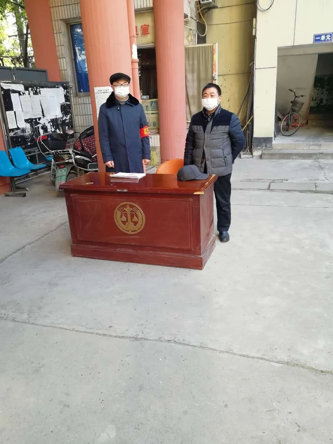 立案庭張興文同志在長(zhǎng)安社區(qū)法院宿舍小區(qū)進(jìn)行值守,作為疫情聯(lián)防聯(lián)控的“守門人”他用自己的力量為小區(qū)筑起疫情防護(hù)墻,義無反顧地站在保護(hù)群眾安全的一線。