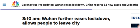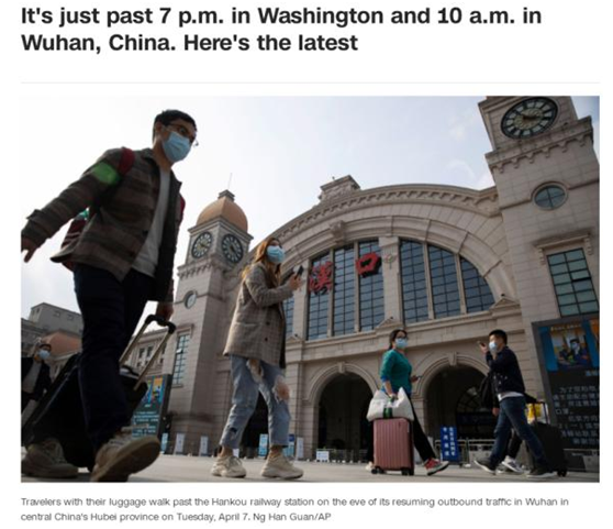 美國消費者新聞與商業頻道(CNBC):長達76天的武漢“封城”今天正式結束