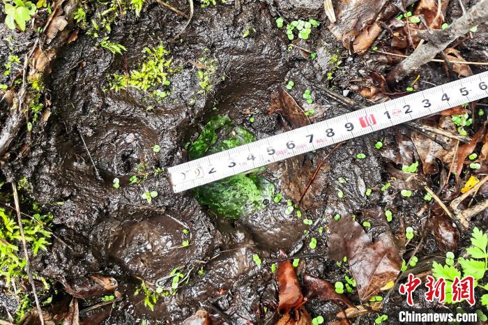 工作人員在現場測量東北虎足跡 龍江森工集團供圖
