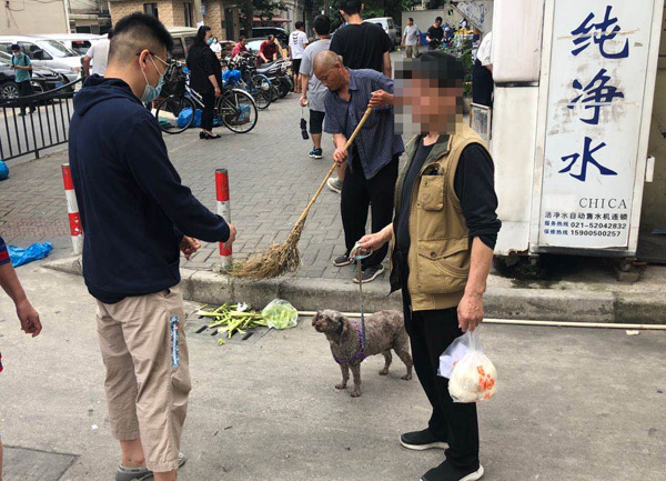 遛狗居民被勸回(江蘇路街道供圖)