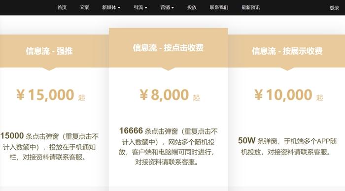 某彈窗營銷機構報價。截圖
