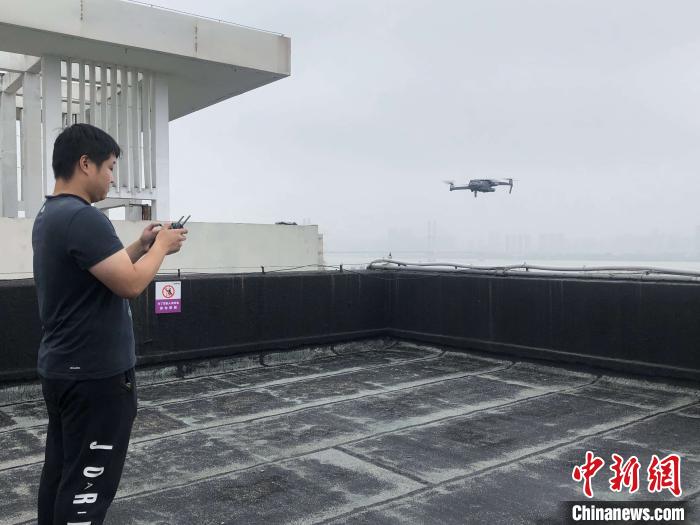 武漢市水務局無人機大隊隊員啟動無人機巡堤查險 艾弘毅 攝