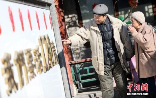 資料圖:一位老人陪患有老年癡呆的老伴散步,考她墻上的字。中新社記者 楊可佳 攝