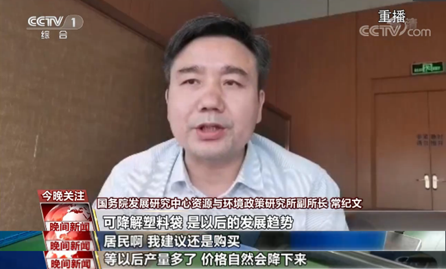 國(guó)務(wù)院發(fā)展研究中心資源與環(huán)境政策研究所副所長(zhǎng) 常紀(jì)文:可降解塑料袋是以后的發(fā)展趨勢(shì),我建議還是購(gòu)買。以后產(chǎn)量多了,價(jià)格自然會(huì)降下來(lái)。可降解塑料袋不是說(shuō)在任何條件下都是可以降解的,它的降解是有特定的條件。那么現(xiàn)在有一個(gè)管理上的難處,就是可降解塑料袋和我們一般使用的塑料袋,如果混在一起,都進(jìn)了垃圾焚燒發(fā)電廠了,那么可降解塑料袋要發(fā)揮作用是很難的。
