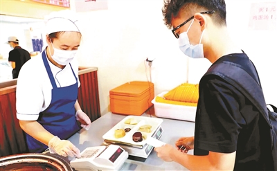 “終于不用再糾結一份菜吃不飽、兩份菜吃不下了。現在打一份半剛剛好,還可以來三個半份,完美。”一位正在學一食堂吃晚飯的女生告訴北京青年報記者。