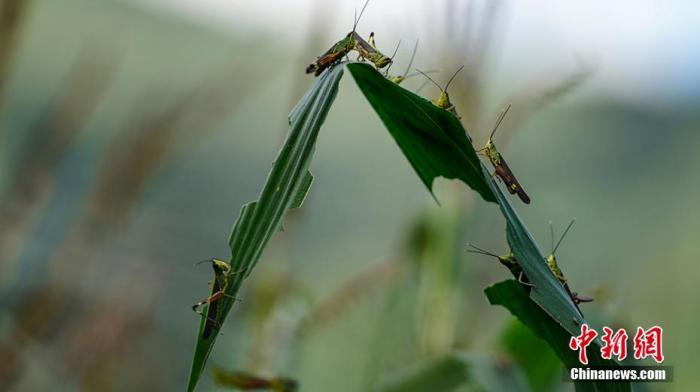 資料圖:蝗蟲在啃噬玉米葉 中新社記者 康平 攝