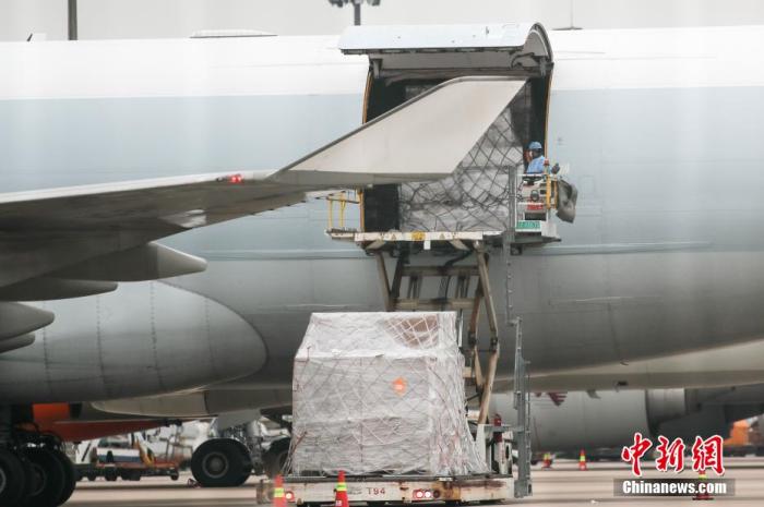 11月23日,上海浦東國(guó)際機(jī)場(chǎng)貨運(yùn)停機(jī)坪,卸貨作業(yè)有序進(jìn)行。 張亨偉 攝