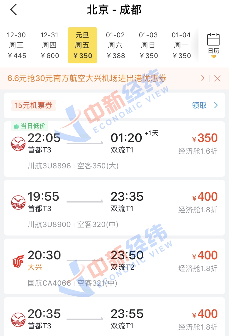 元旦火車(chē)票開(kāi)搶,這些航班價(jià)格比高鐵便宜近半