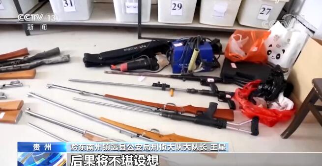 黔東南州鎮(zhèn)遠(yuǎn)縣公安局刑偵大隊(duì)重案中隊(duì)中隊(duì)長 黃恒:同寨的堂哥家有兩支,有一支是他親自開面包車送到了黔西他老丈人家,他制造了八支疑似火藥槍,這個(gè)量是相當(dāng)大的,如果一個(gè)人是以狩獵為主他不可能制造八支出來。