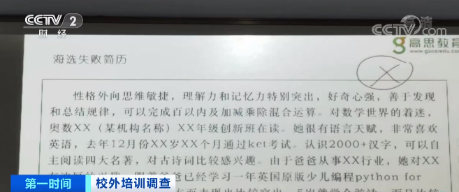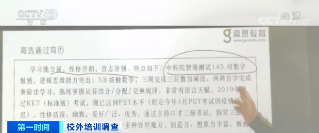 某校外培訓機構工作人員:而且“早培”的時候,他們考試的時候,我們的成績他們有時候會參考的。這個他們選拔的時候就會看,所以我跟你說了,無論我們高思,還是學而思,只要通知的大面積考試你一定要參加。