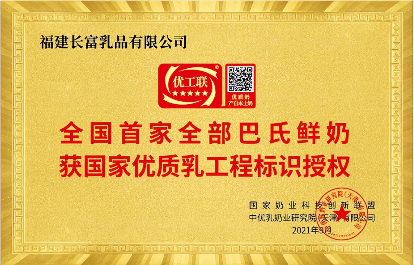 2021年,長富不同包裝的所有巴氏鮮奶,均獲得了國家優(yōu)質乳工程標識授權。
