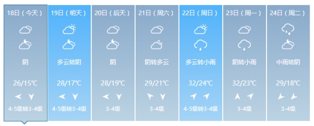 今夜,全省多云。19日,全省多云。20日,全省多云到陰。21日,全省多云到陰。