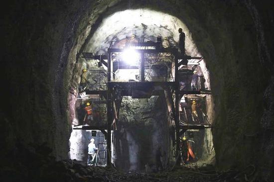 5月15日訊(福建日報通訊員?賴全平?攝影報道)近日,寧化縣水茜鎮境內的浦梅鐵路蓮花山隧道內一派繁忙,中鐵十七局的建設者們正在緊張作業。