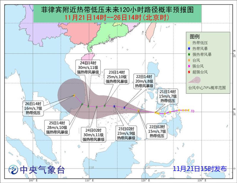 菲律賓附近熱帶低壓未來路徑概率預報圖(圖片來源:中央氣象臺)
