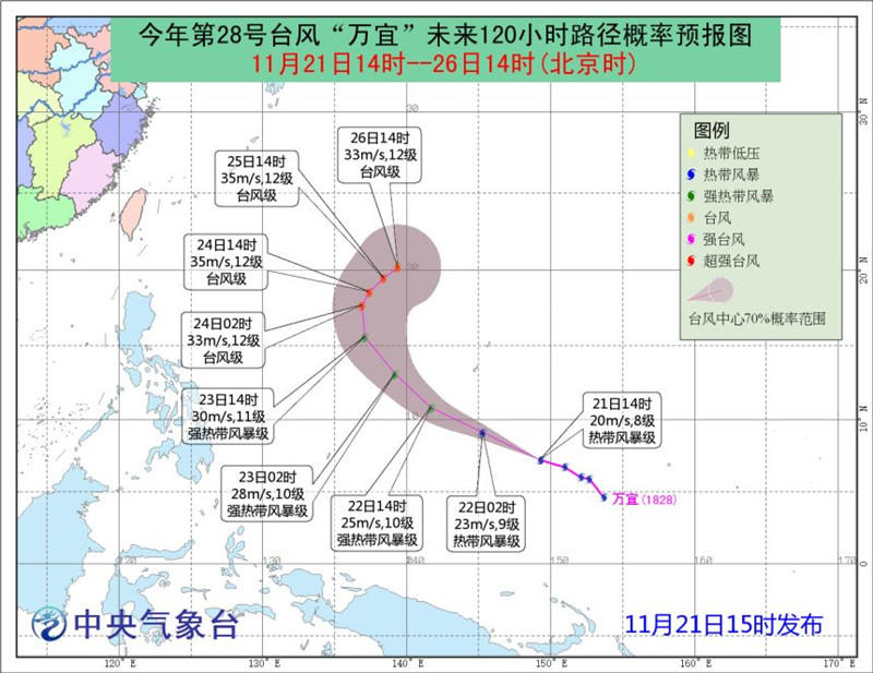 臺風“萬宜”未來路徑概率預報圖(圖片來源:中央氣象臺)