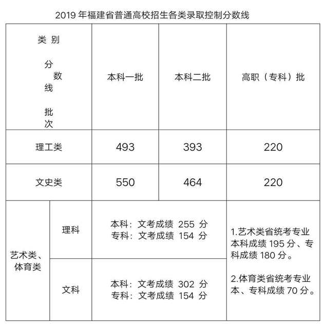 2019年福建省普通高校招生各類錄取控制分數線公布