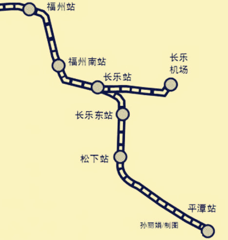 福州至福州南段新建線路設計時速160公里,福州南至平潭段設計時速200公里。
