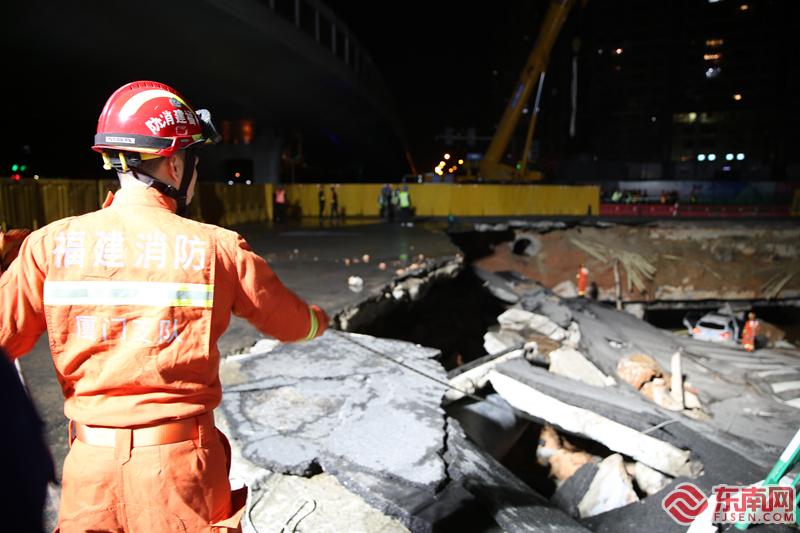 廈門呂厝路口塌陷現場正在處置 孫二偉 攝?