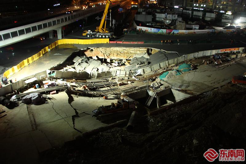 廈門呂厝路口塌陷現場正在處置 東南網記者 李霖 攝?