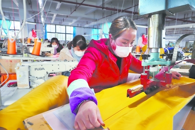 ?2月23日,在周寧縣興達(dá)勞保服裝有限公司,員工趕制發(fā)往意大利的防雨衣。該公司2月7日取得復(fù)工復(fù)產(chǎn)許可,現(xiàn)日產(chǎn)600多套防雨衣。 林輝 黃起青 攝