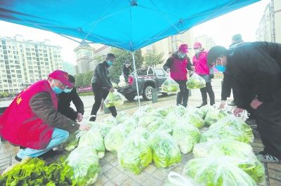 光澤縣黨員志愿者將蔬菜運(yùn)到城內(nèi)小區(qū)的愛心蔬菜平價自助銷售點(diǎn)。福建日報記者 林輝 通訊員 武少龍 攝
