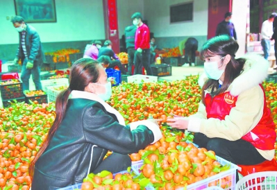 閩清縣黨員志愿者幫助當(dāng)?shù)亻俎r(nóng)剪枝、分類、裝果。 福建日報 吳旭濤 攝
