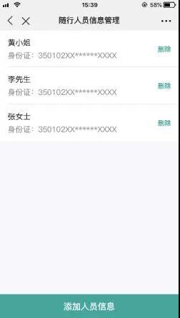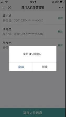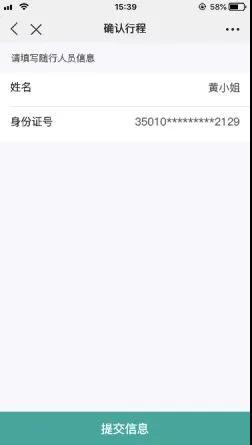 3、填寫行程信息,選擇預約場次,添加隨行人員,最多可攜帶2名隨行人員。
