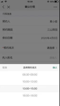 時間段內可參與預約,每個陵園每日共開放4個場次可供預約,約滿為止。