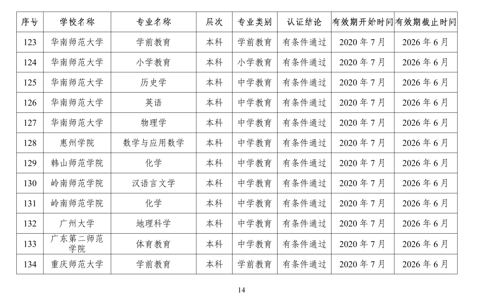2020年通過普通高等學(xué)校師范類專業(yè)認(rèn)證的專業(yè)名單