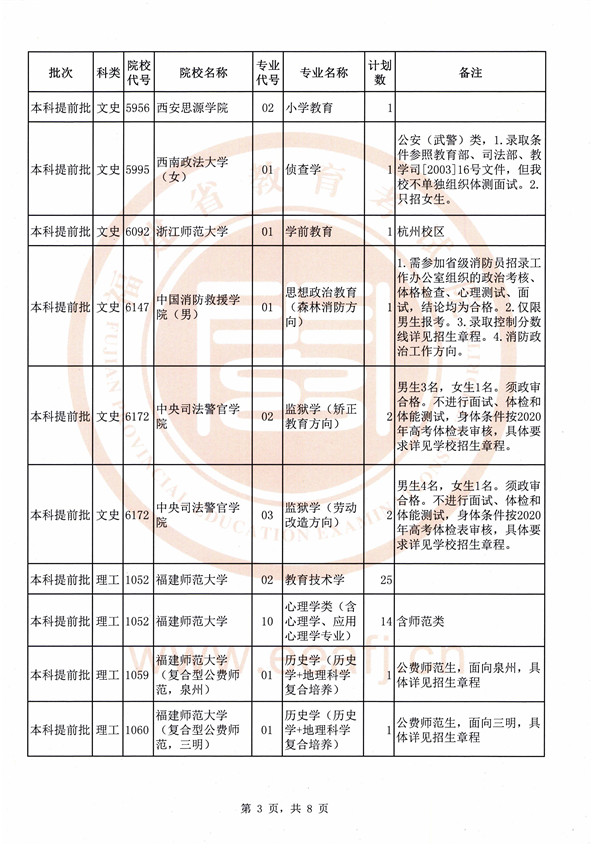 (3)有關(guān)高校的辦學(xué)地點(diǎn)、收費(fèi)情況、報(bào)考條件等,請(qǐng)考生參閱《福建省2020年普通高校招生計(jì)劃》、有關(guān)政策規(guī)定和該高校的招生章程等。