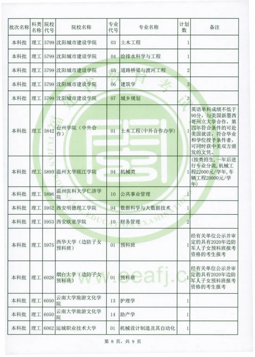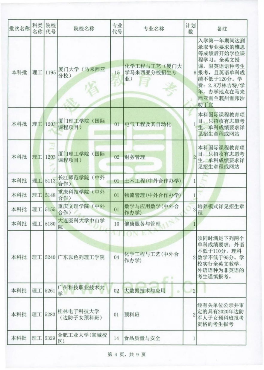 (3)有關高校的辦學地點、收費情況、報考條件等,請考生參閱《福建省2020年普通高校招生計劃》、有關政策規定和該高校的招生章程等。