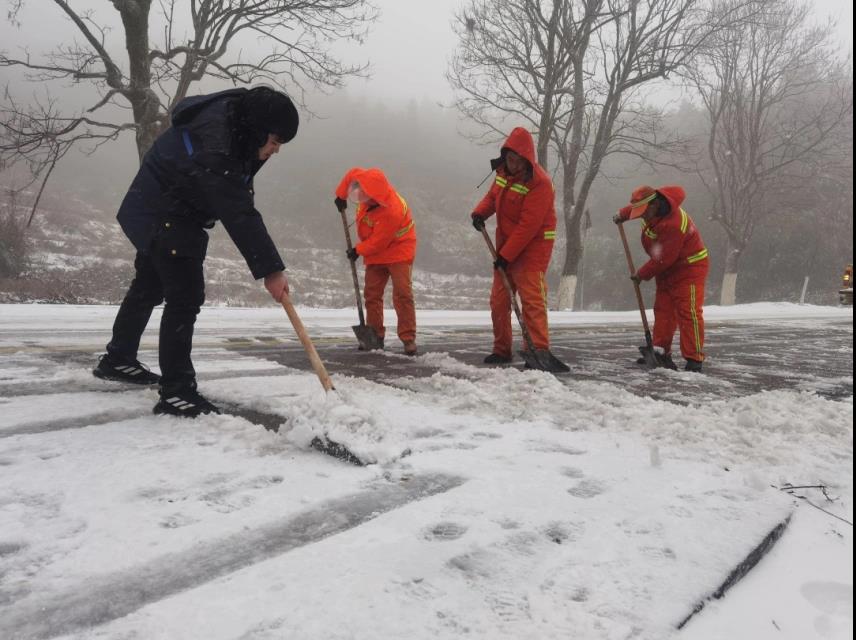 三明公路局工作人員正在鏟雪除冰。(省交通廳供圖)