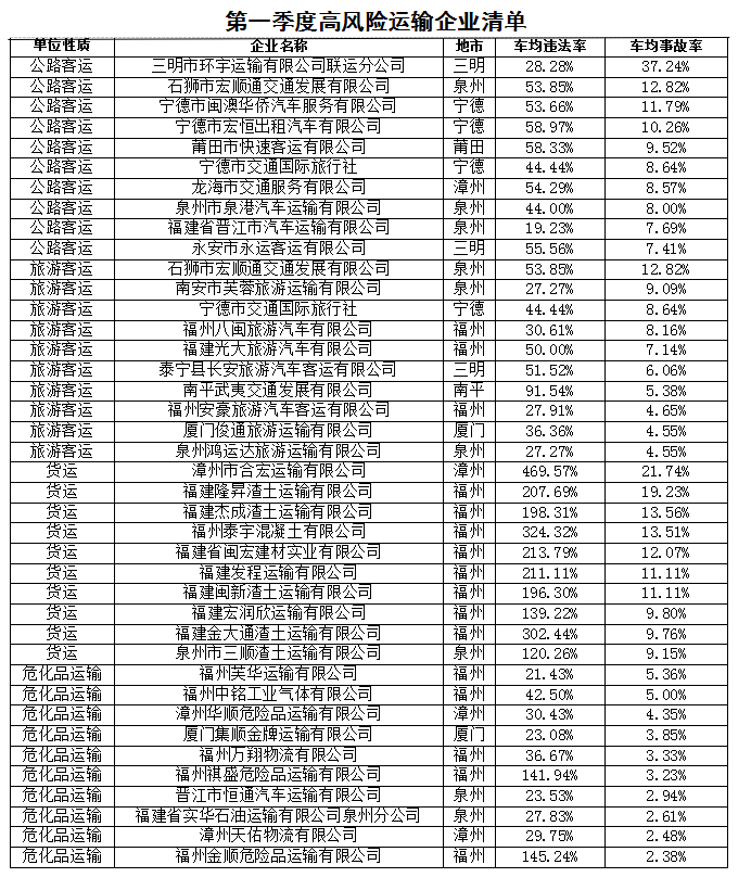 第一季度高風(fēng)險(xiǎn)運(yùn)輸企業(yè)清單