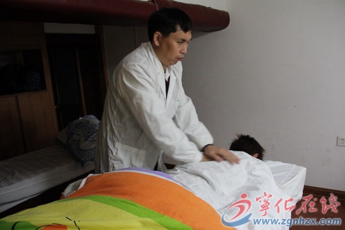 ??? 寧化縣中環路有一家盲人推拿店,老板叫黃圣華,是一位盲人。每天,他和妻子開門迎客,一直忙碌到深夜才休息。他用雙手“按”出了客人的舒適與健康,“按”出了新房子,“按”來了一個家庭,“按”出了一個光明人生。