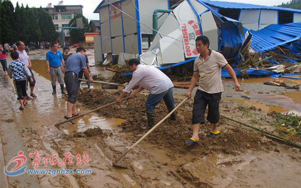 ??? 16時,洪水逐漸退去后,他幫忙疏散學生,讓學生家長接孩子回家。他開始清理和登記學校財產損失情況。在測量了倒塌圍墻的長度后,他清理被洪水沖刷在操場淤泥里的課桌課凳,發現有些課桌課凳被洪水沖出校外,便沿河尋找。