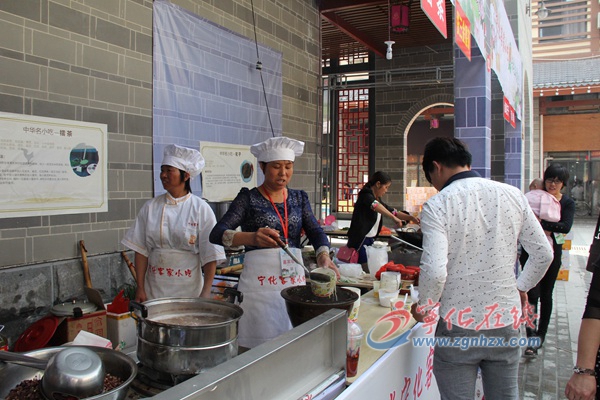 ??圖為張三金在寧化客家小吃節上賣擂茶